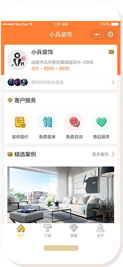 項目名稱:家裝、工裝裝修公司小程序源碼定制開發模板案例所屬類型:微信小程序開發項...